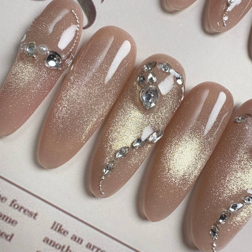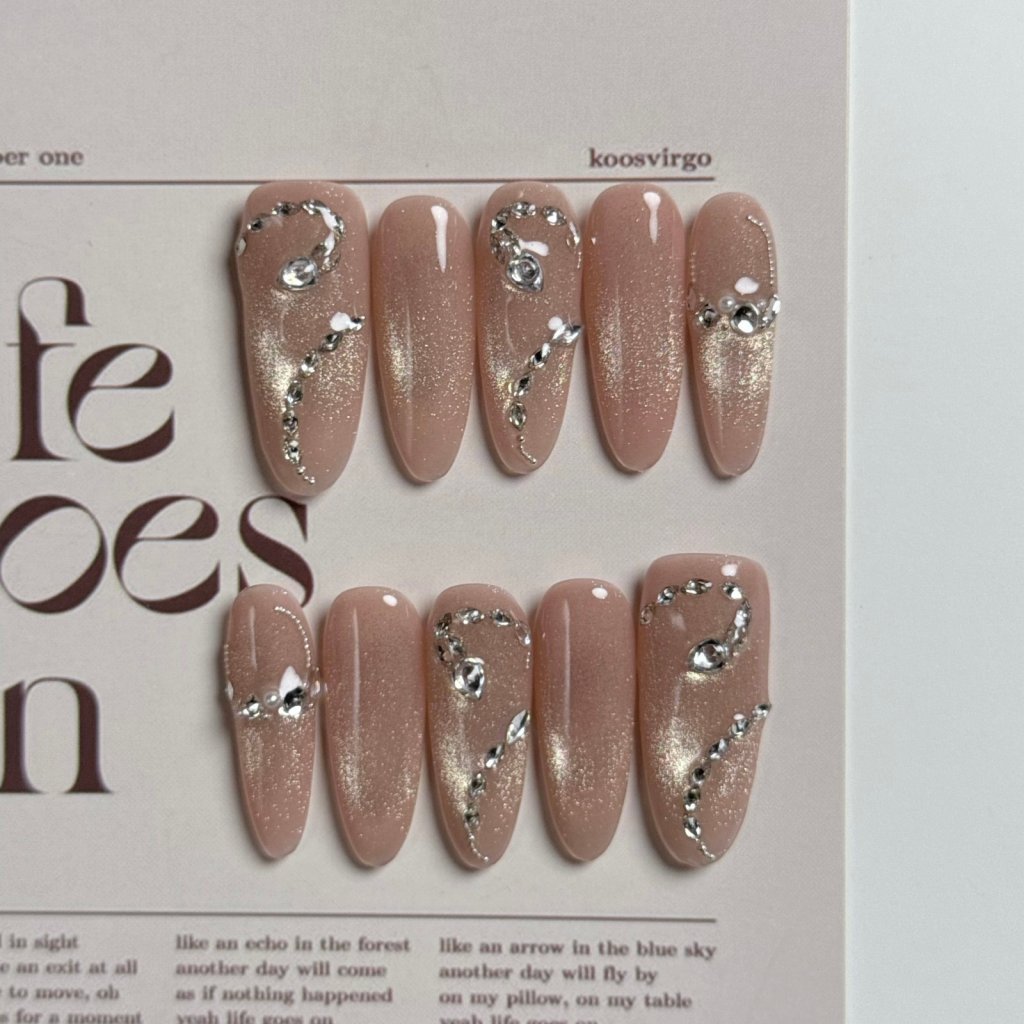 本店穿戴甲是純手工製造,手工定制更符合你的尺寸,一副10片,光療製造,甲片可重複使用。