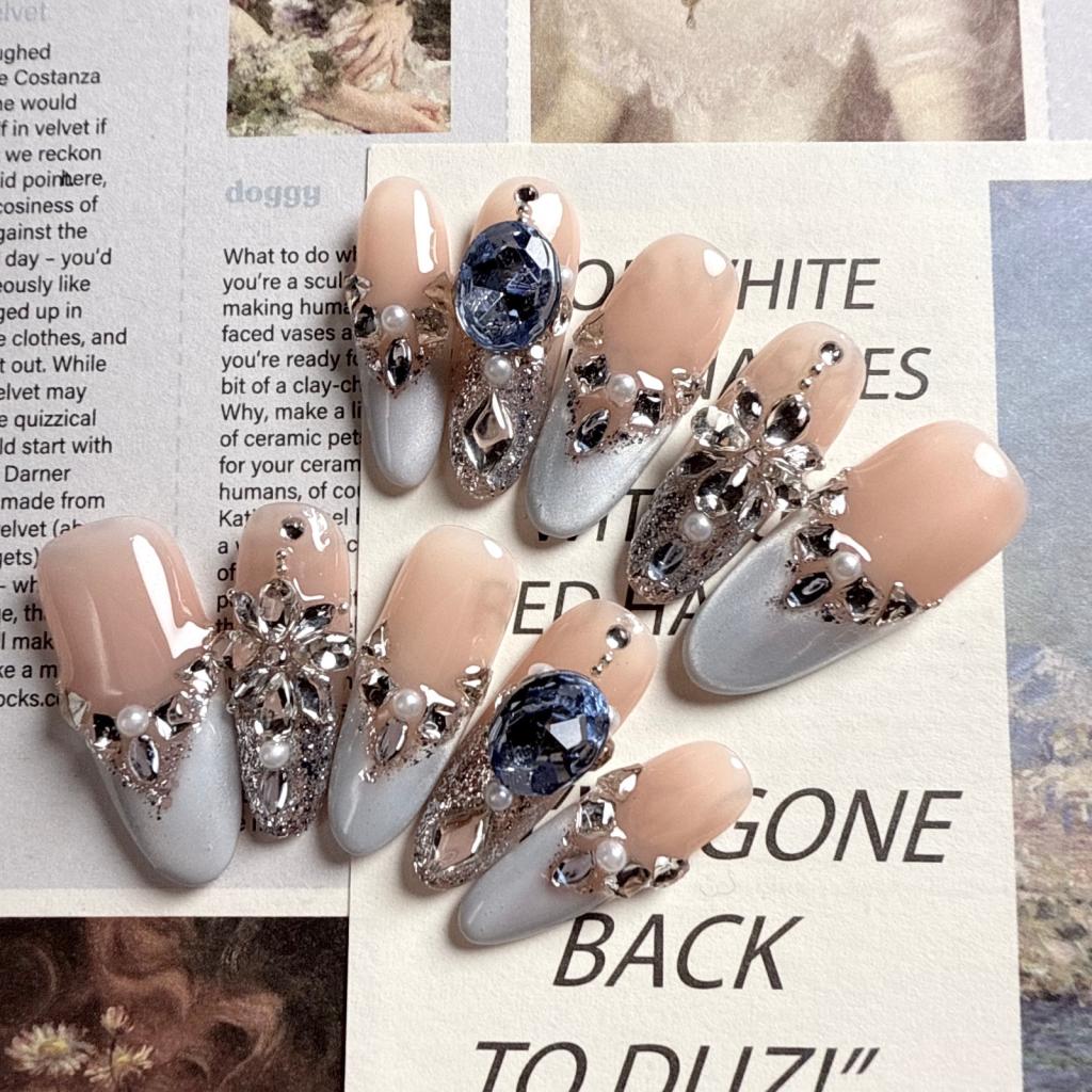 本店穿戴甲是純手工製造,手工定制更符合你的尺寸,一副10片,光療製造,甲片可重複使用。