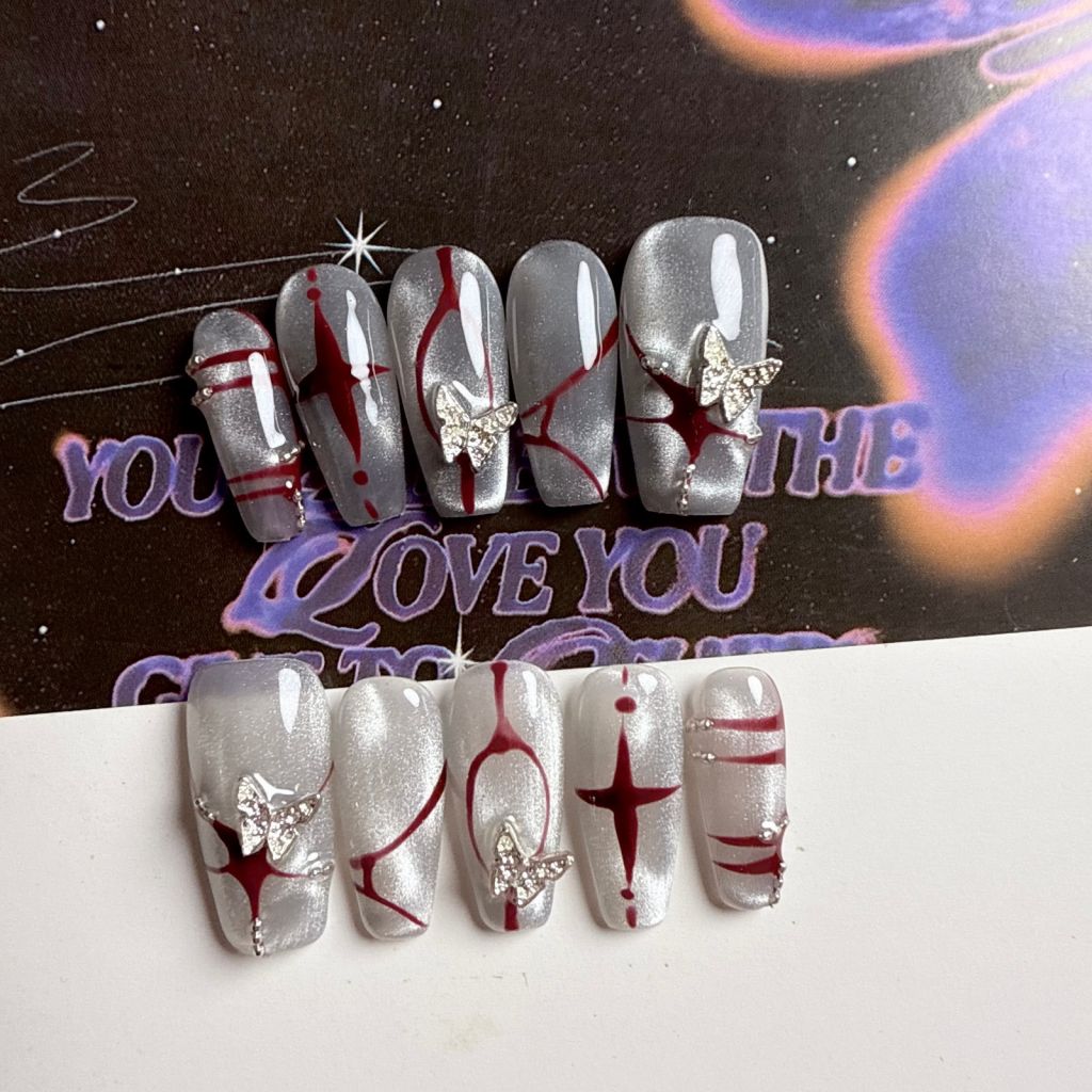 本店穿戴甲是純手工製造,手工定制更符合你的尺寸,一副10片,光療製造,甲片可重複使用。