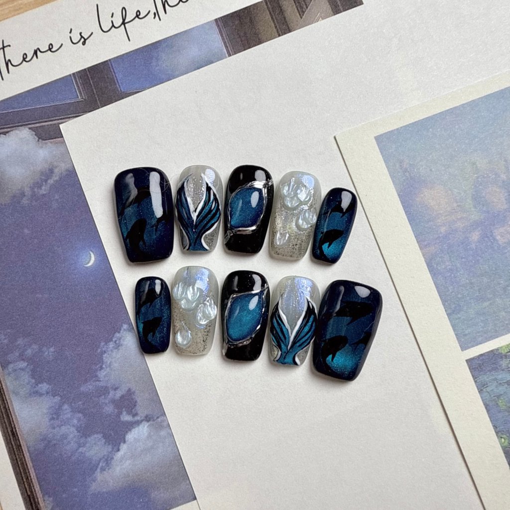 本店穿戴甲是純手工製造,手工定制更符合你的尺寸,一副10片,光療製造,甲片可重複使用。