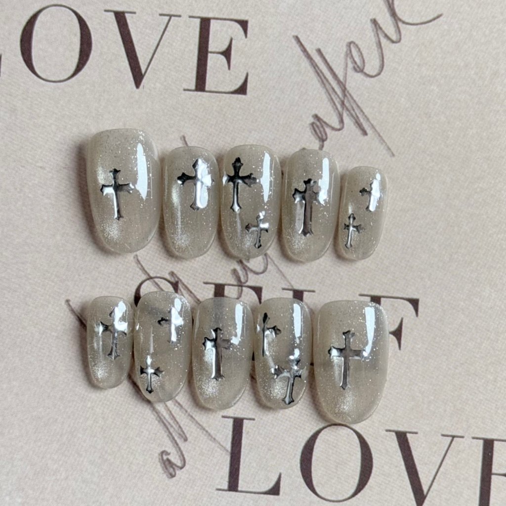 Silver cross press on nails