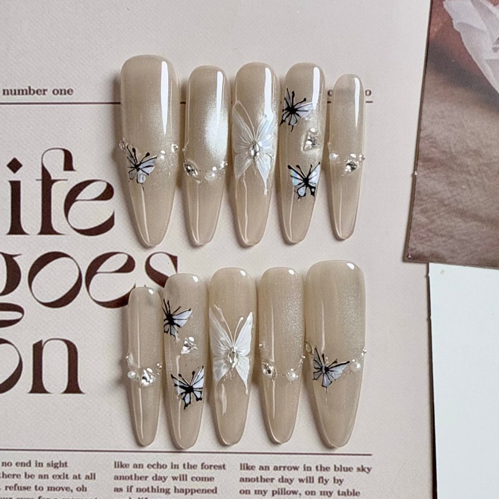 本店穿戴甲是純手工製造,手工定制更符合你的尺寸,一副10片,光療製造,甲片可重複使用。