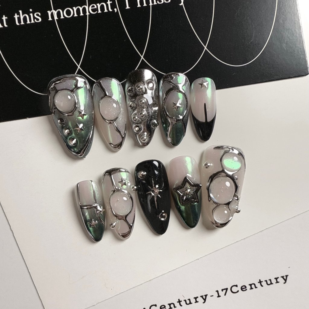 本店穿戴甲是純手工製造,手工定制更符合你的尺寸,一副10片,光療製造,甲片可重複使用。