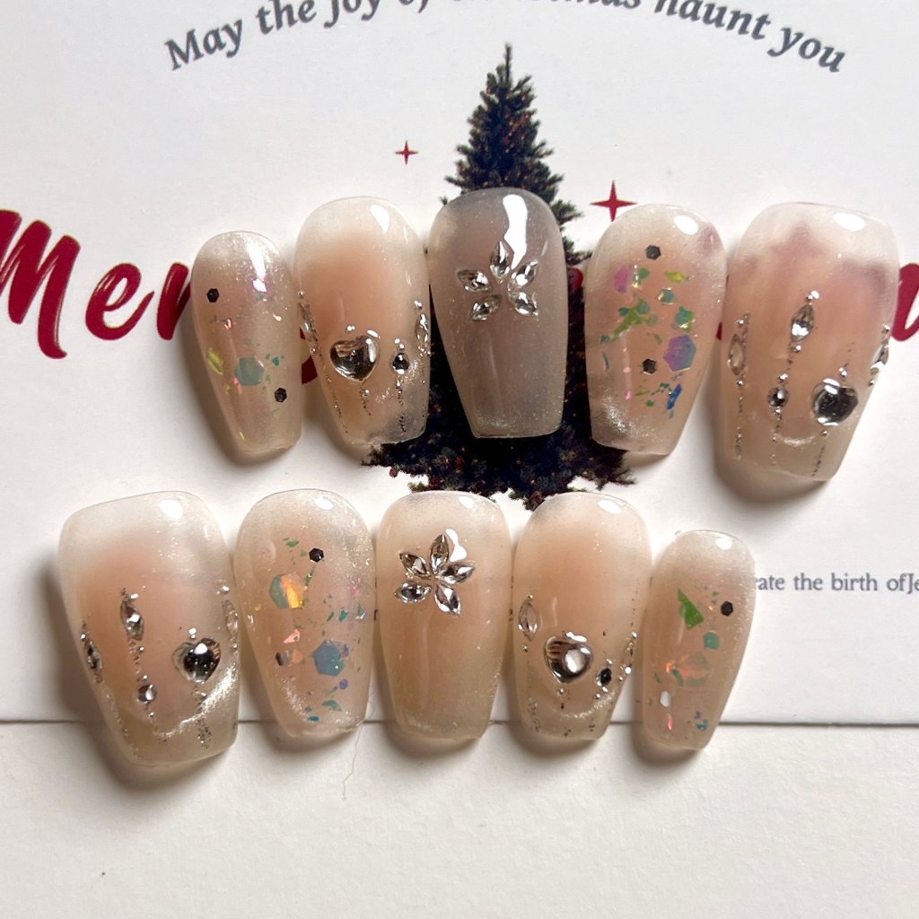 本店穿戴甲是純手工製造,手工定制更符合你的尺寸,一副10片,光療製造,甲片可重複使用。