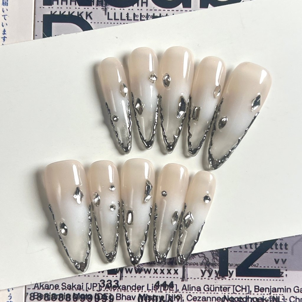 本店穿戴甲是純手工製造,手工定制更符合你的尺寸,一副10片,光療製造,甲片可重複使用。