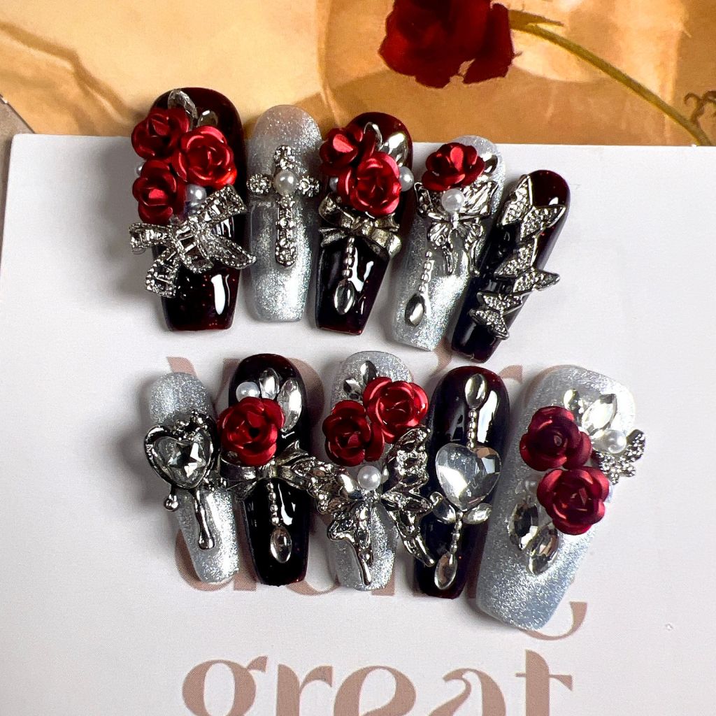 本店穿戴甲是純手工製造,手工定制更符合你的尺寸,一副10片,光療製造,甲片可重複使用。