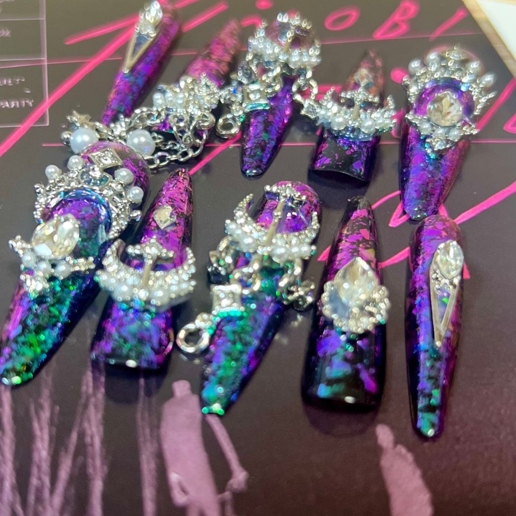 本店穿戴甲是純手工製造,手工定制更符合你的尺寸,一副10片,光療製造,甲片可重複使用。