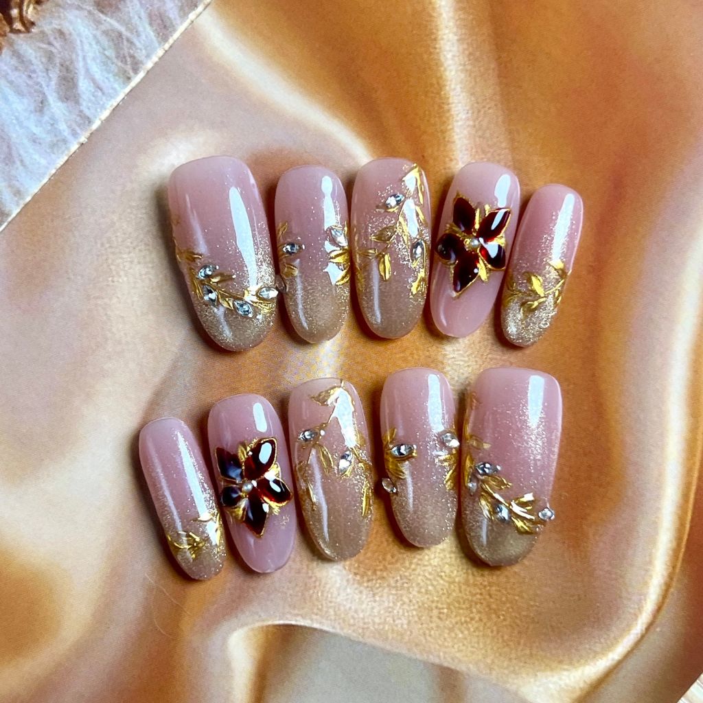 本店穿戴甲是純手工製造,手工定制更符合你的尺寸,一副10片,光療製造,甲片可重複使用。