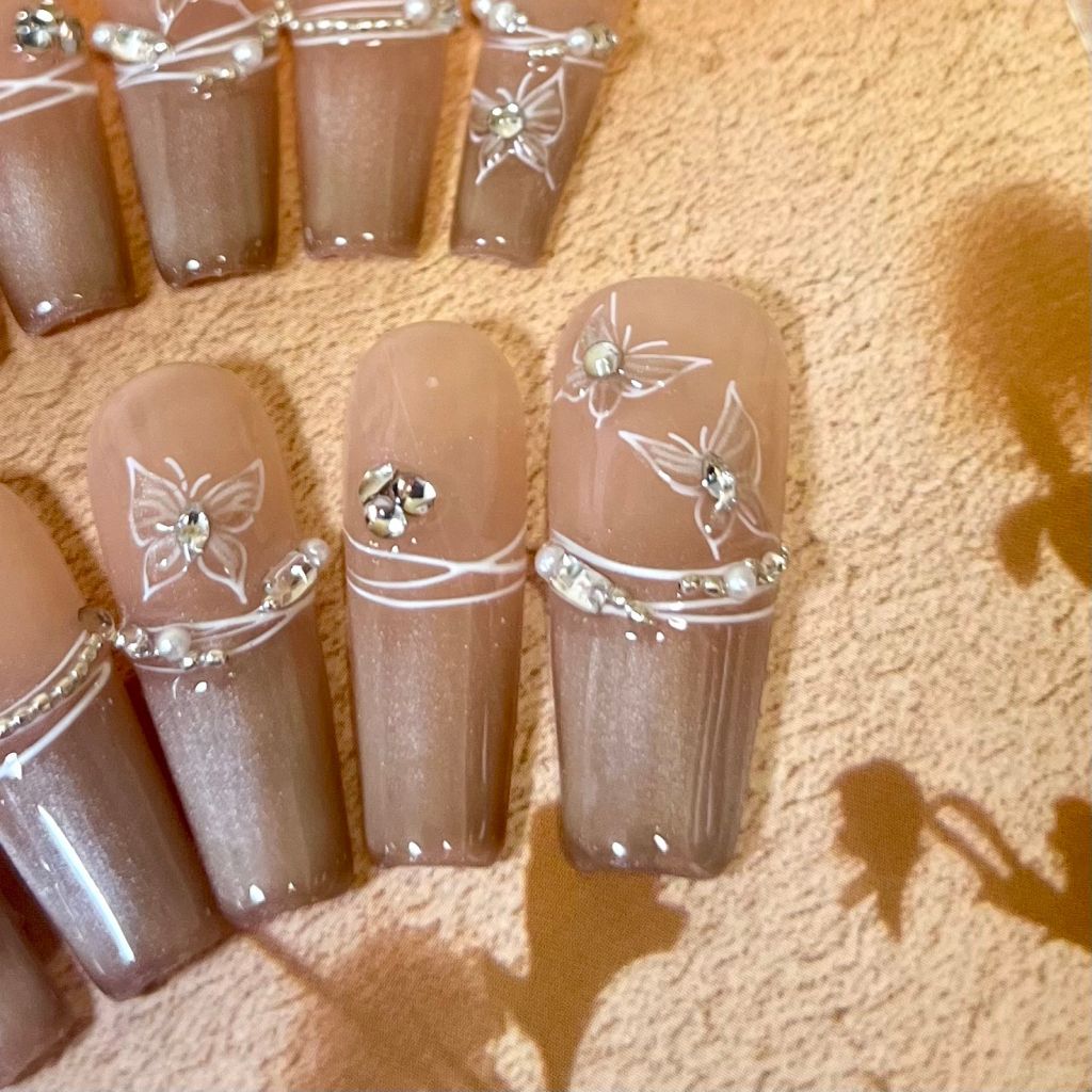 本店穿戴甲是純手工製造,手工定制更符合你的尺寸,一副10片,光療製造,甲片可重複使用。