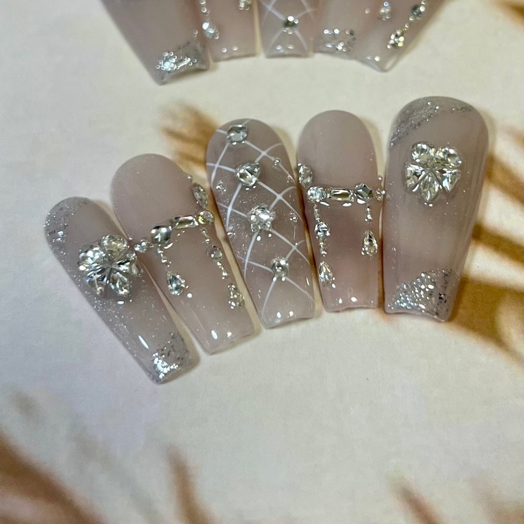 本店穿戴甲是純手工製造,手工定制更符合你的尺寸,一副10片,光療製造,甲片可重複使用。