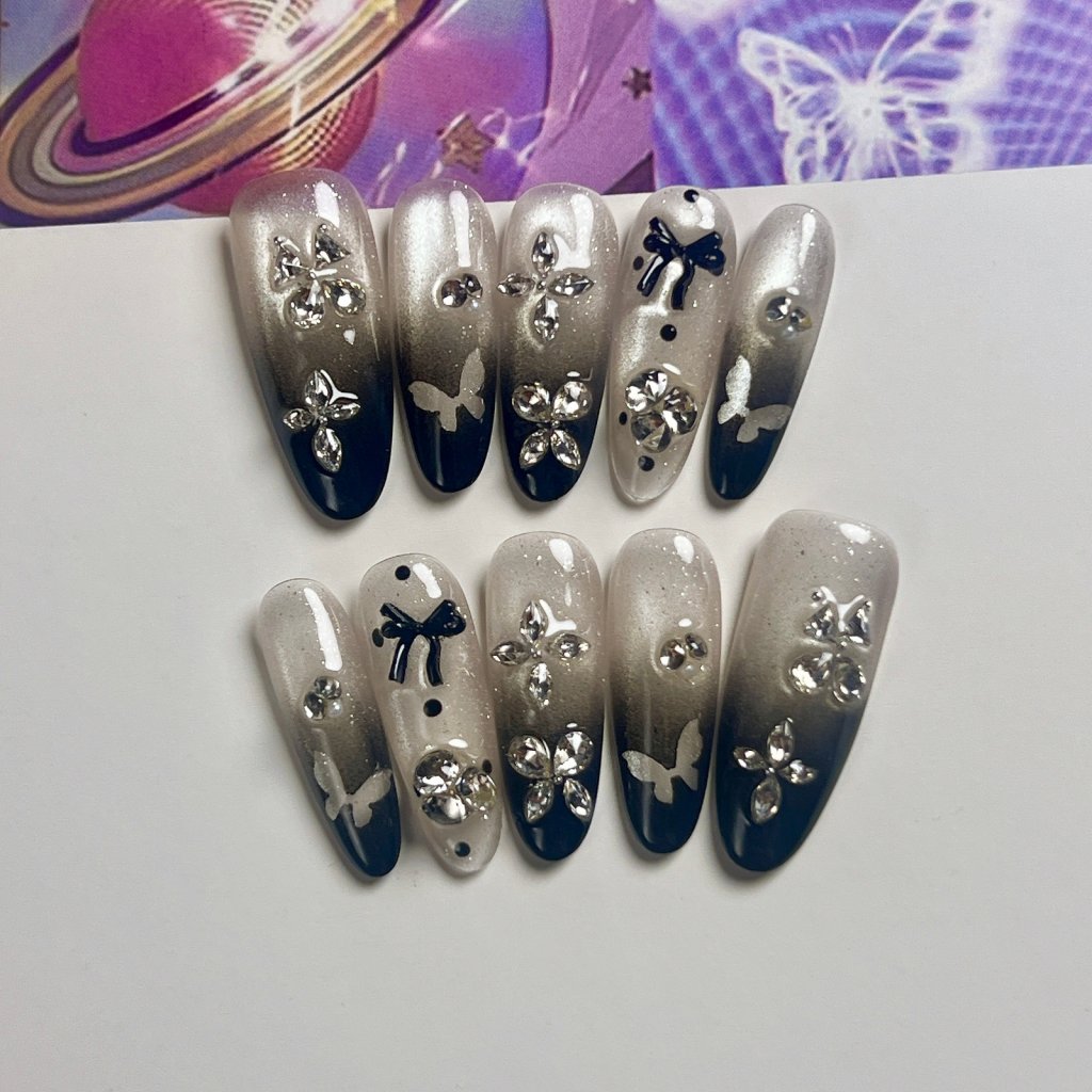 本店穿戴甲是純手工製造,手工定制更符合你的尺寸,一副10片,光療製造,甲片可重複使用。