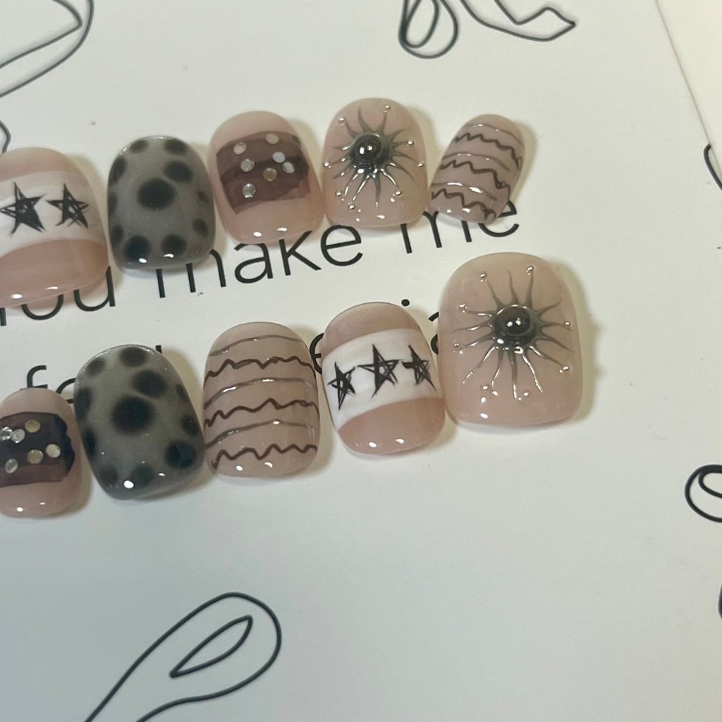 本店穿戴甲是純手工製造,手工定制更符合你的尺寸,一副10片,光療製造,甲片可重複使用。