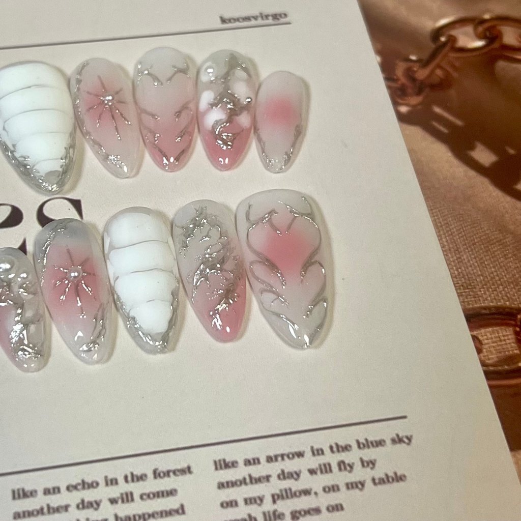 本店穿戴甲是純手工製造,手工定制更符合你的尺寸,一副10片,光療製造,甲片可重複使用。